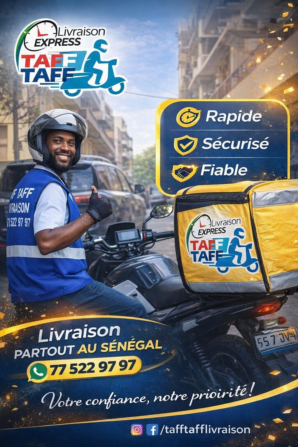 Contactez-nous via WhatsApp ou par téléphone au [[77 522 97 97]]. Notre équipe est prête à vous aider à répondre à vos besoins de livraison.